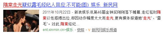 隋棠还曾在金钟奖颁奖礼上走光。她在甩裙摆、秀腿时,直接露出下体!