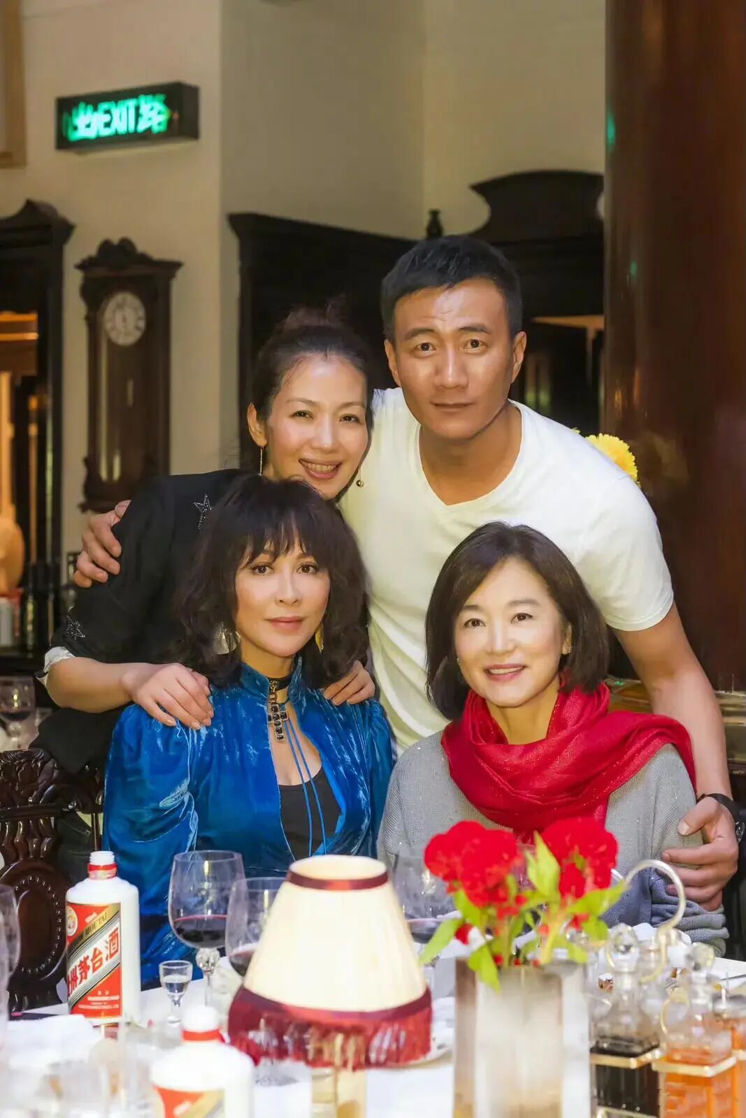 刘嘉玲同林青霞、胡军聚餐,蓬松而又时尚的发型,身材蓝色的夹克,内搭黑色的抹胸,57岁的的刘嘉玲身材保持的非常的好,夹克的领口增加了纽带设计,在领口下形成了一片类似的镂空感觉,顿时将时尚感提升了一个层次,同时镂空的形成也增加了几人女人味儿。同样照片中的林青霞灰色的衣服搭配红色的围巾,面露微笑,看这个状态也是很不错的。