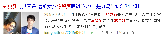 然而没多久,林更新发博支持李晨范冰冰恋情的时候,陈碧舸站出来说“别站队支持别人了,自己也不是什么好鸟。”这是打脸吗?随后迅速删博的行为告诉我们,没错,就是打脸,因为两个人已经掰了呀~~