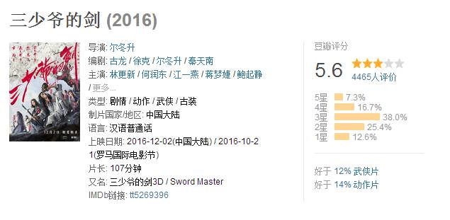 今天上映的《三少爷的剑》有多少婊贝看过了呢?改编自古龙同名小说,由博纳影业集团出品,徐克监制,尔冬升执导,林更新、何润东联合主演,还是3D,也算是大制作了,但是在豆瓣上评分只有5.6分,会不会太低了点呢??
