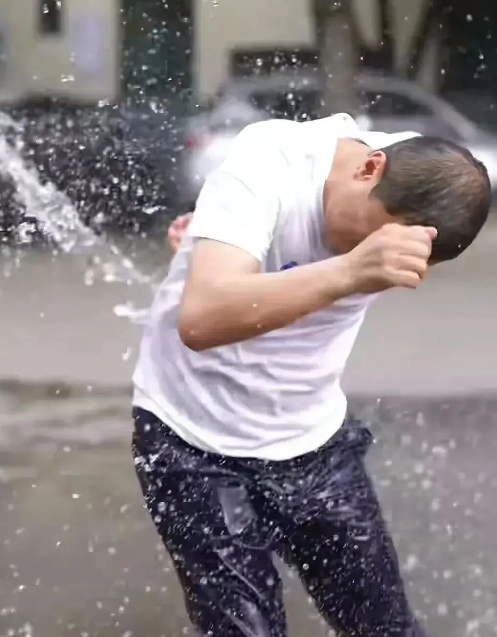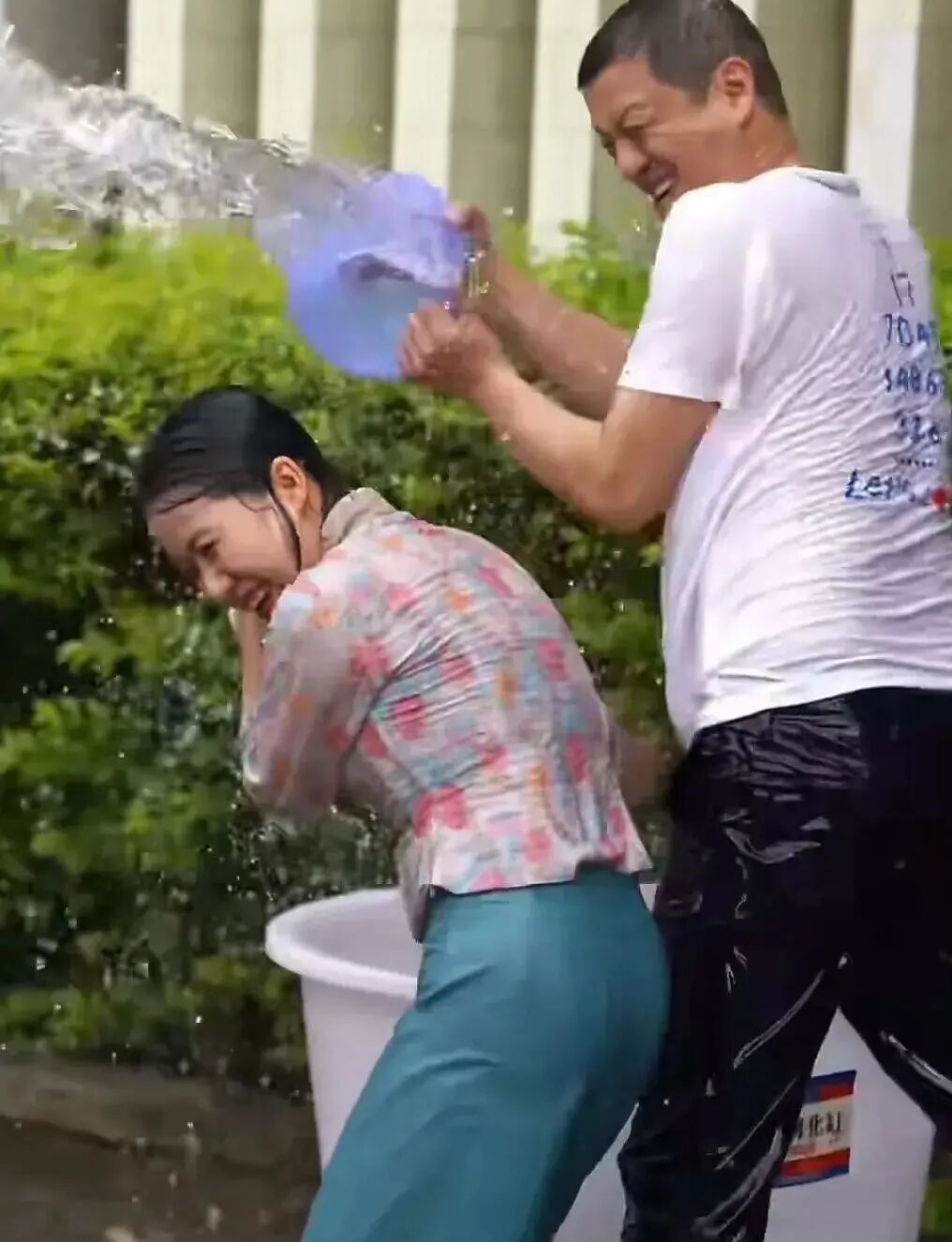 在这场泼水节的狂欢中,李亚鹏仿佛回到了童年时光。他奔跑在街头,尽情享受着泼水带来的清凉与快乐。他的头发被水打湿,贴在额头上,显得有些凌乱,但这反而增添了他的亲和力与接地气。