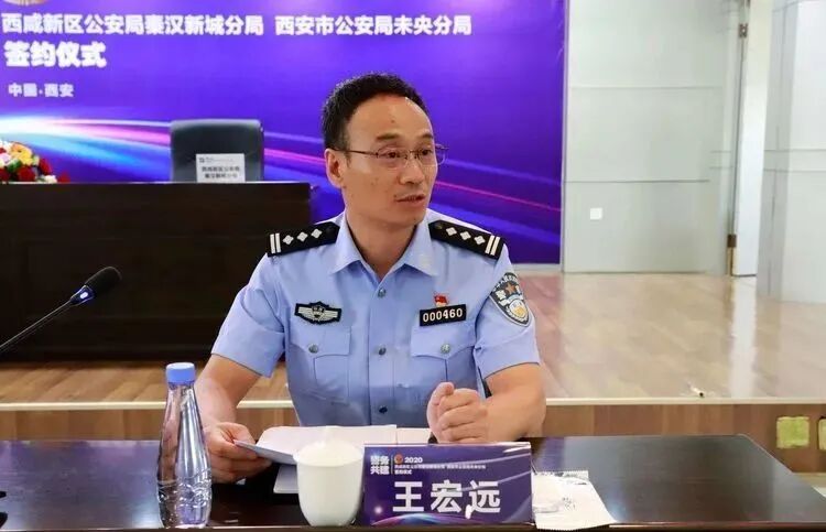 西咸新区公安局秦汉新城分局党委副书记、政委王宏远发表了热情洋溢的致辞,他说:两分局间的警务合作是为进一步落实公安部和省厅公安警务机制改革的重要举措,是跨地区公安基层实战单位构建更紧密协作伙伴关系的有益尝试,是两个分局公安建设和发展史上的一件大事。国家建设“大西安”战略实施以来,作为“大西安”建设两个重要的政治、经济和文化区域,双方加强交流、优势互补,共同谱写了追赶超越新篇章。作为维护辖区政治安全、社会稳定的主力军,未央公安分局和秦汉新城公安分局强化工作协作、加强警务交流,必将会更好地为辖区社会发展和经济建设营造更加稳定的治安环境。未央分局有着悠久的历史、优良的传统和突出的工作业绩,尤其是在反恐维稳、突发事件处置、公安大数据和网安工作方面有着非常成熟的经验和出色的成绩,已经成为西安公安工作的排头兵。秦汉分局是一个新建分局,三年来,在队伍建设、基层基础建设和各项硬件设施建设上取得了一定成绩,但警务人员业务素质、工作经验,尤其是面对秦汉社会和经济的快速发展,如何管理一个现代化新城方面经验相对欠缺,希望未央分局同志成为良师益友,传经送宝,希望秦汉分局同志们全面学习、借鉴未央分局工作经验,全力实现秦汉分局公安工作新跨越、新突破。希望两个分局在刑事侦查、治安管理、安保维稳和公安大数据合成作战建设方面多交流、多借鉴,加强更深入的、实质性的合作,实现软硬件技术的融合,实现一加一大于二的效果,构筑警务信息交流畅通高效的共享平台。