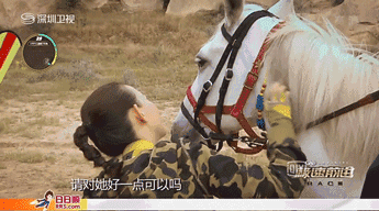吴昕在马背上很害怕,曾宝仪立马上前安抚,然后又安抚马儿,让它好好照顾吴昕,宽慰了吴昕也温暖了电视机前一票观众。