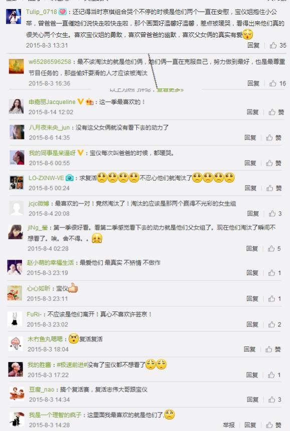 结果敢爱父女组第二个被淘汰,很多人都哭喊着让复活。