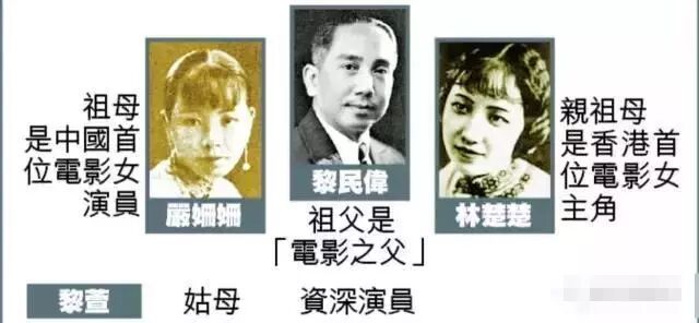 黎姿出身在演艺世家,祖父是曾经获得第13届香港金像奖最高荣誉奖的“香港电影之父”黎民伟,祖母是香港第一代女明星林楚楚。