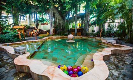 金隅八达岭温泉度假村是一座集温泉疗养、会议接待、商务娱乐和旅游休闲为一体的三星级度假酒店,占地260亩,远山近水、鲜花绿树,被市旅游局评定为国家AAA级风景旅游景区。这里的温泉水源自地下2000米深处,出水温度54摄氏度,水质优良,富含人体所需的氟、硫、铁、硅等多种矿物质及微量元素,具有特殊的保健和美肤功效。新扩建的温泉SPA乐园占地6000平方米,室内外温泉泡池达32个,浴种多达18个,各种温泉SPA保健项目让您在放松身心的同时收获健康和美丽。