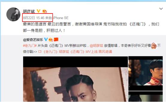 小编忽然想起来当天下午3点多正好看到胡彦斌还发了一条微博,小编查了一下当天北京到厦门的航班,3点36分起飞的航班之后就是4点多的航班,7点多到厦门,时间妥妥的严丝合缝!