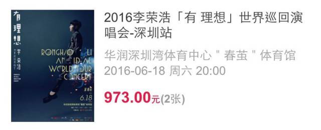 李荣浩深圳演唱会门票*2(一人2张哦)
