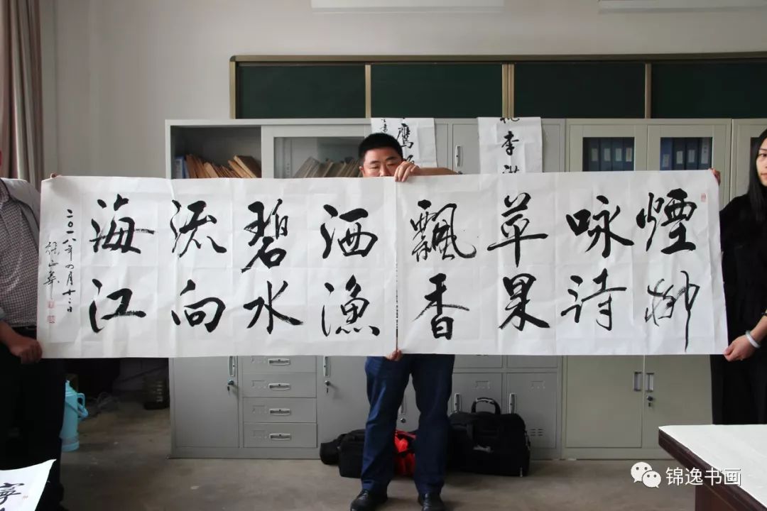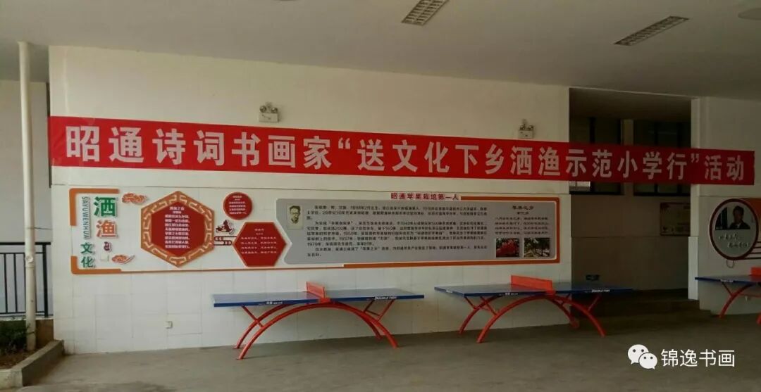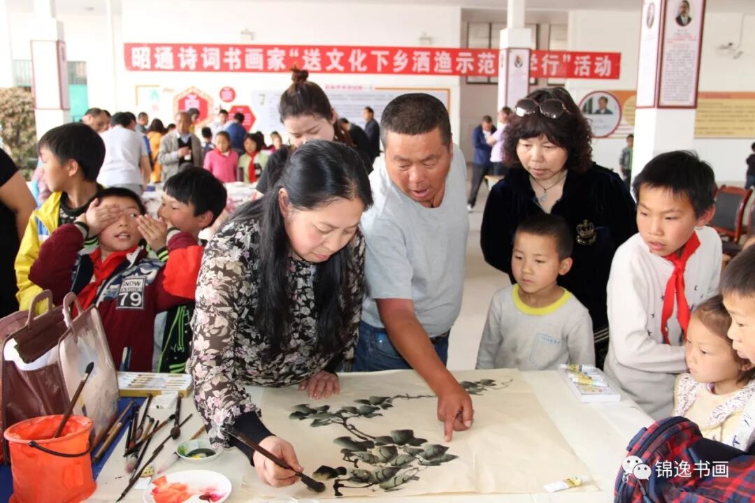 为弘扬中国优秀传统文化,戊戌之春,受洒渔镇党委政府和洒渔中心校邀请,锦逸书画研究会老中青二十多人组成的书画团队走进洒渔示范小学,将书画艺术的瑰宝带进校园。书画家们首先参加了洒渔镇示范小学少年宫的启动仪式,然后进行现场泼墨挥毫,传经送包。他们把精心创作的几十幅书画艺术作品全部留给学校。