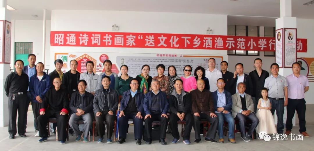 昭通诗词学会、锦逸书画研究会与洒渔镇党委政府领导、中心校领导及洒渔示范小学老师合影留念