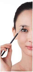 用眉粉勾勒眉型,如本身眉毛浓密度够,只需用眉粉盘中较浅的眉粉均匀涂抹于整个眉毛。再用较深色的眉粉填补眉毛空隙,两种颜色打造出来的眉毛看起来会更加立体。
