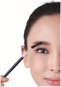 选择螺旋纹的眉刷沿着眉毛生长的方向将眉毛梳开。修理好眉毛,接着用眉笔勾画出弯弯的轮廓,根据自己的眉形和脸型来确定大小。