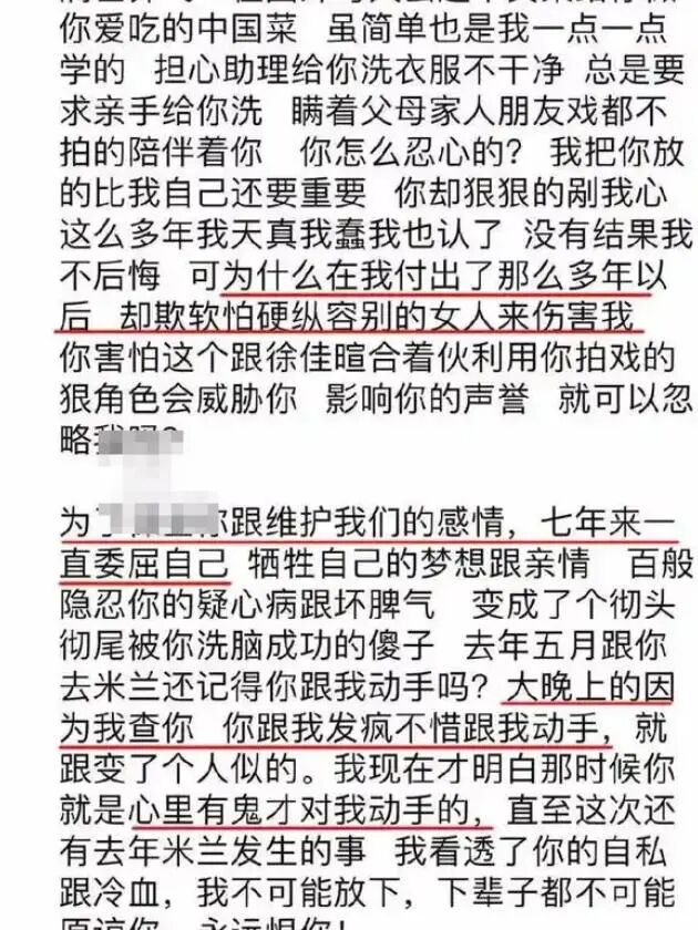 她详细描述了自己与吴瀚恋爱期间所遭受的种种折磨。