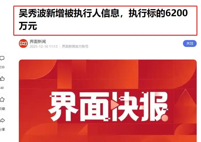 近日,法院出手,吴秀波再被执行6200万元。
