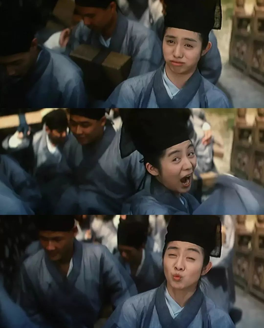 最先出场的杨采妮饰演的祝英台,在家里就是精灵鬼马整天犯迷糊的小萌神,被当作大家闺秀培养却琴棋书画样样不通。开头一场戏,父母要考她,全家仆人和丫鬟帮她作弊,还真有几分成龙《龙少爷》般的默契。之后,祝英台到书院和梁山伯相识,两人在上学路上互相模仿,连续做了几十个经典的动态表情包,让人看到一种甜甜的类似初恋的感觉。慢慢,梁祝渐渐熟了起来,互动也越来越多,在住所、课堂、考场到最后的足球场;两人像一对欢喜冤家,从互相抵触到互相帮助,最后互相思念,难舍难分。【祝英台在家中从小就被要求,用绳子套住双脚,让她能像个大家闺秀那样小步的走路。可惜再萌的闺秀,身体也住着一颗汉子的心。】