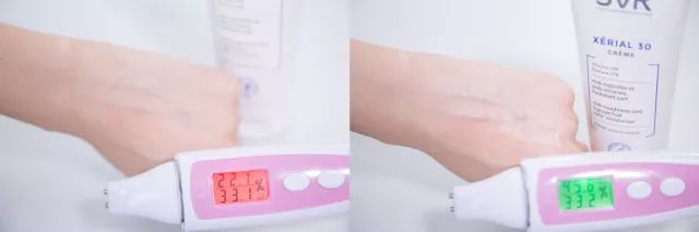 不过SVR的保湿效果好像更加可观一点,由涂抹前的22:33,涂抹后上升到50:33,肌肤水分明显增长了许多,水油比例保持在一个非常稳定的良好状态,即便是作为普通的身体乳来说也是非常优秀的~