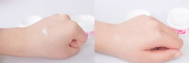 接下来我们来看一下两款鸡皮霜的质地和吸收效果。