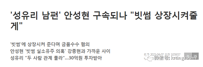 因演员成宥利的丈夫职业高尔夫选手安圣贤被怀疑与"Bithumb实际所有者"姜钟贤是好友而被拘留。姜某是演员朴敏英的前男友。