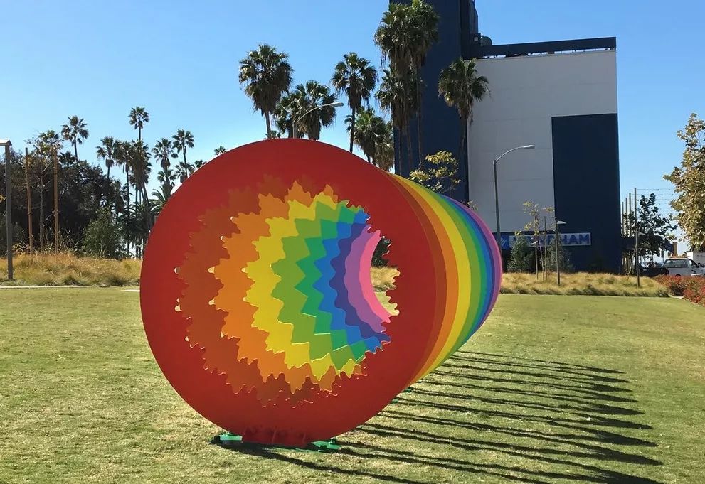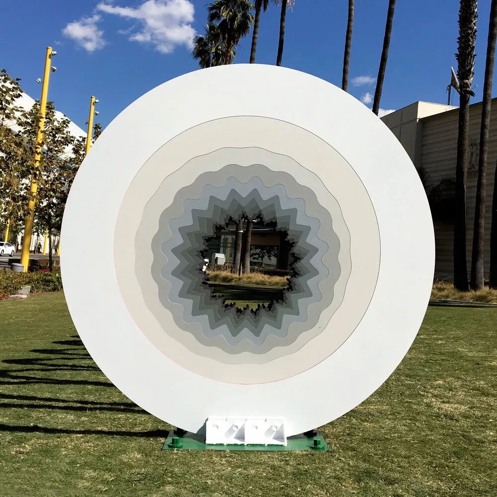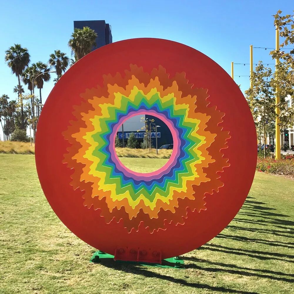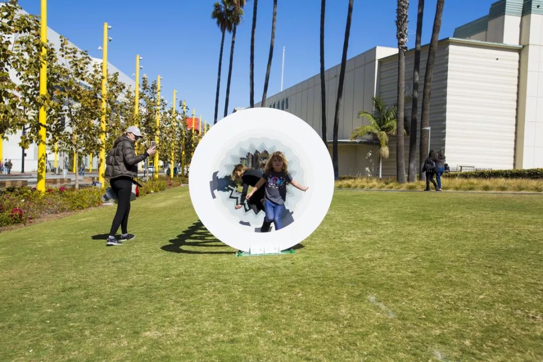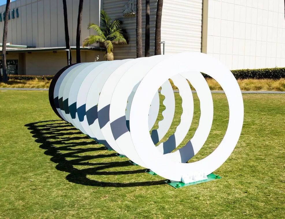在过去上半年的洛杉矶,Jen Stark受圣莫尼卡文化事务委托,由LeBasse Projects策划,在圣莫尼卡市中心的三角广场设立一个名为 《Tunnel Vision》的户外公共雕塑 。这是 Jen Stark从室内美术馆视觉作品跨界到户外的第二个大型户外的公共艺术作品。