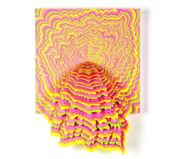 美国艺术家Jen Stark于1983年出生于佛罗里达州迈阿密,并于2005年获得马里兰艺术学院艺术学士学位,主修光学,辅修动画。Jen Stark的艺术作品受到她对视觉系统概念化的兴趣的驱动,以模拟植物生长,进化,天然,分形,模拟地形和几何,使用纸张,木材,金属,油漆相结合,致力于在光学诱惑和感知结合方面之间的平衡。