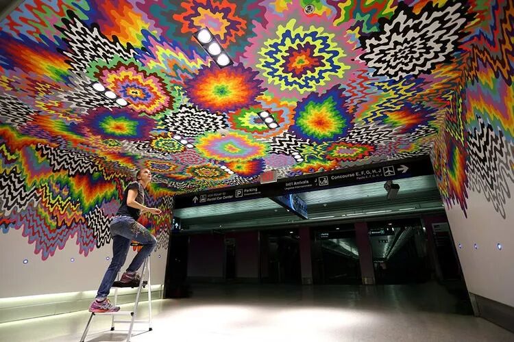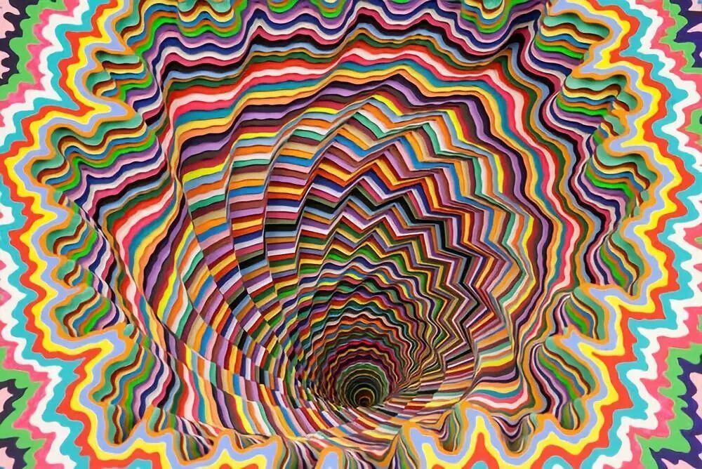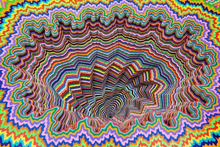 “对于这个特定的作品,我想创造一个形状和颜色的隧道,每个环都会变形,从雕塑的一端,观察者将看到彩虹渐变,当他们在另一边走动时,它将是黑白渐变。我的作品探索了自然界中的观念,通常类似于进化模式,地质构造,地形图和神圣几何。通过我的作品,我希望为观众创造一种鼓舞人心的体验。“—— Jen Stark