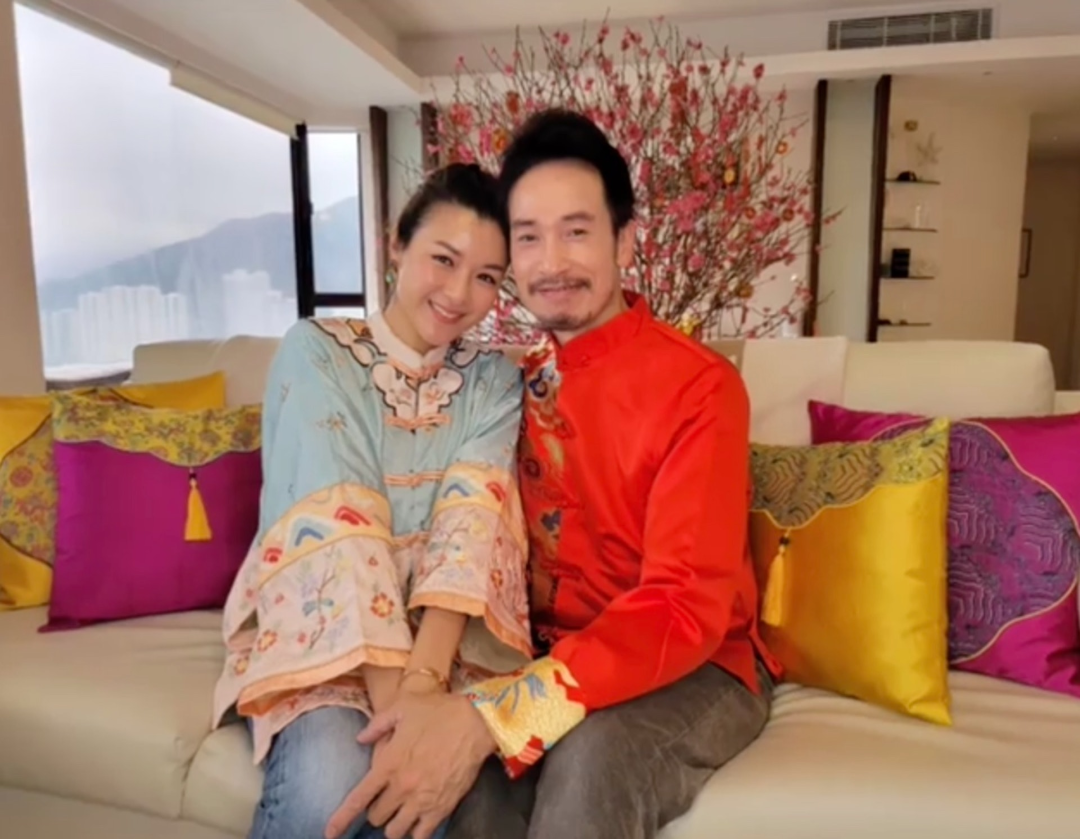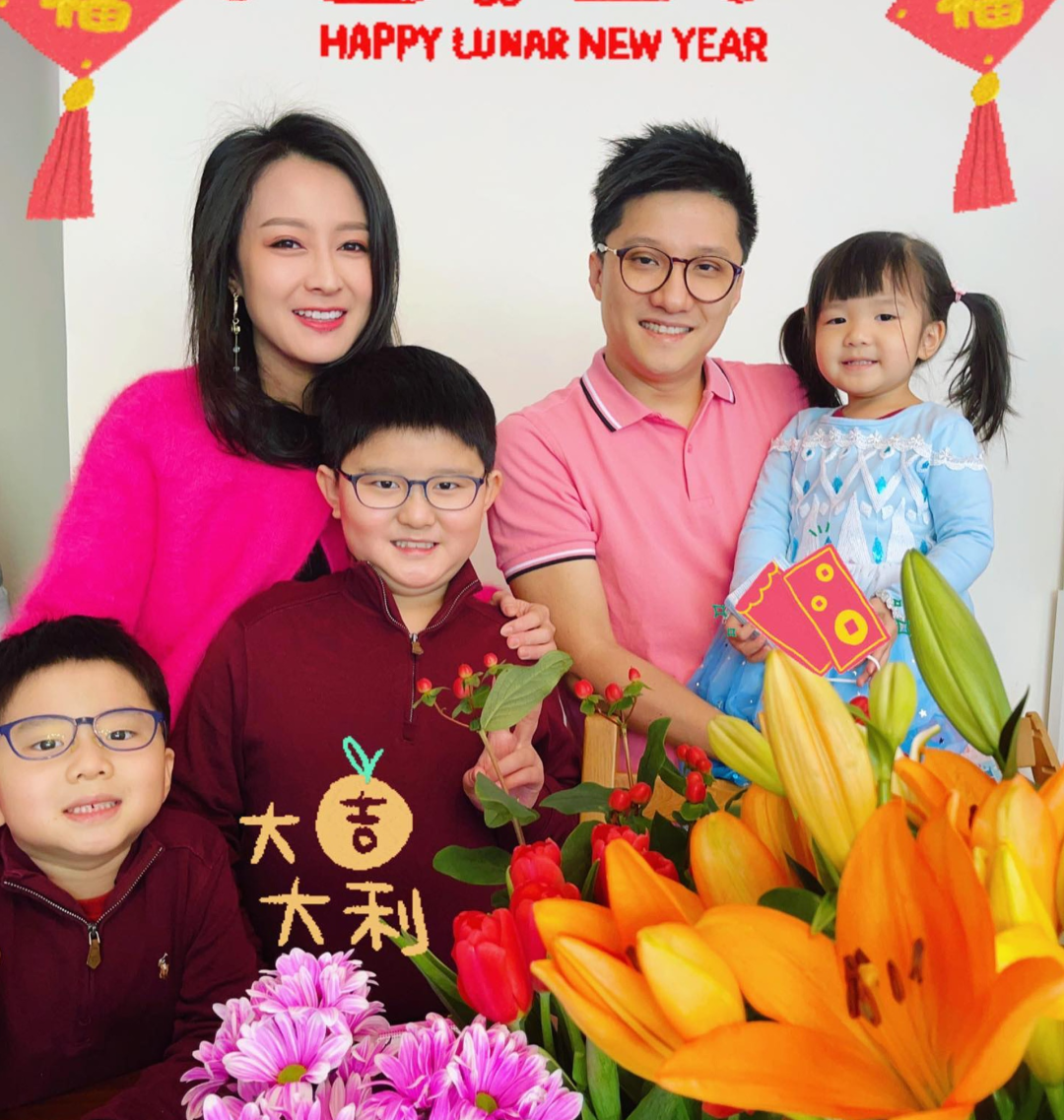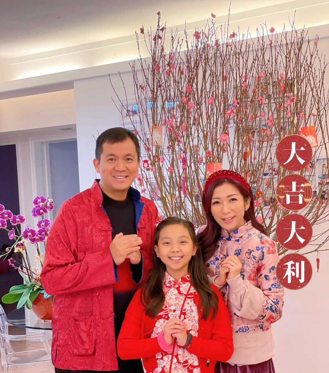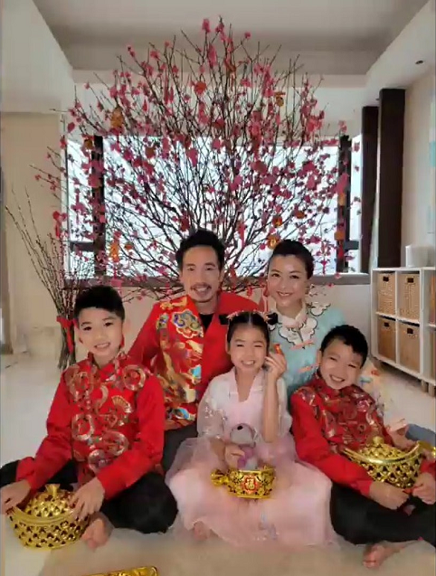 前不久陈茵媺晒出的全家福中,一家五口坐在宽敞的豪宅里,背后靠着1棵盛开的桃花树。选择中式服装的他们,脸上洋溢着喜气洋洋的笑容,非常有过年的氛围。