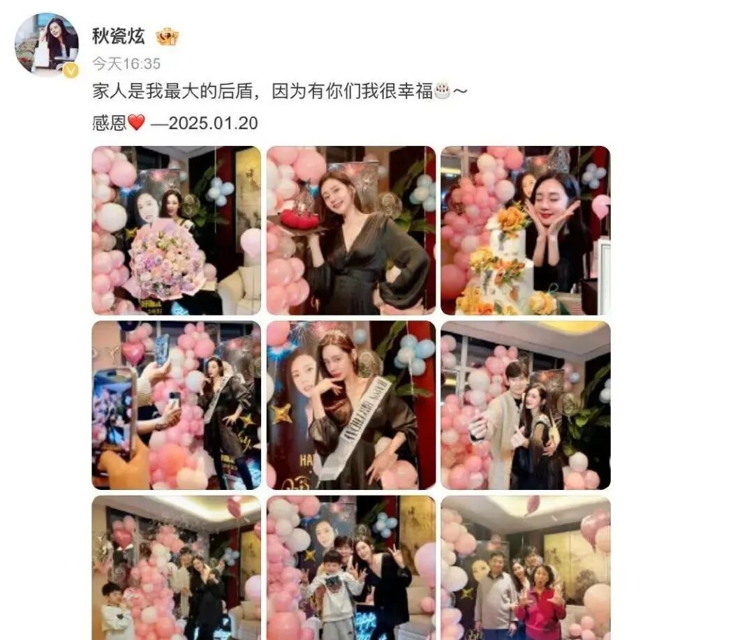 秋瓷炫配文:家人是我最大的后盾,因为有你们我很幸福,感恩。