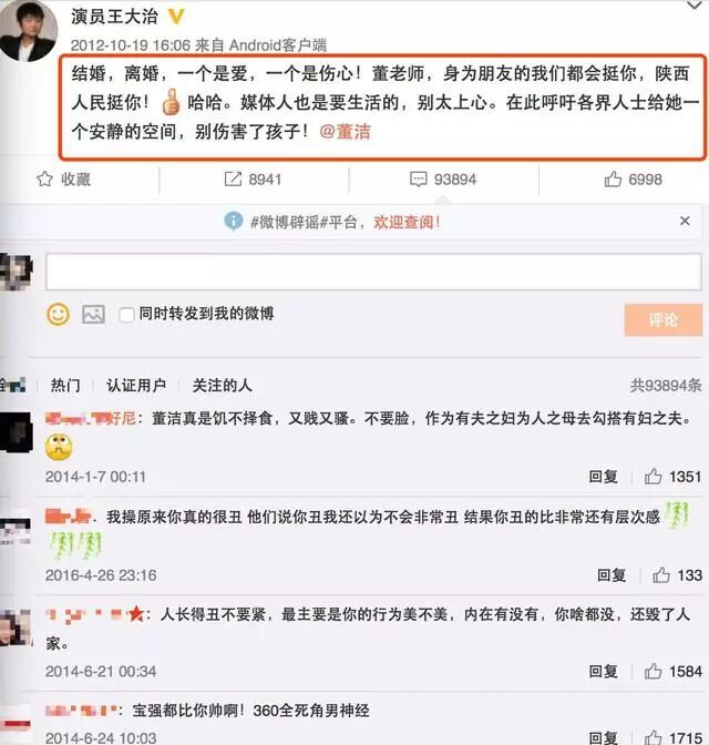 当年的微博评论可是骂声一片。昨晚的一条微博,董洁啥也没说,竟然有众多粉丝“哭红了双眼”……莫非时间真的可以冲淡一切?