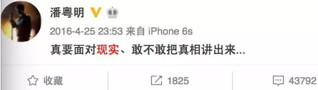 不知是不是看到董洁的一番言论,潘粤明去年发微博:“真要面对现实,敢不敢把真相讲出来?”