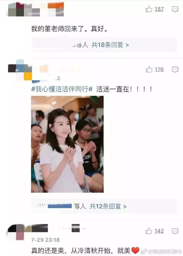 纵观热门评论区,画风和谐,都是一群对董洁回归期待已久的粉丝。