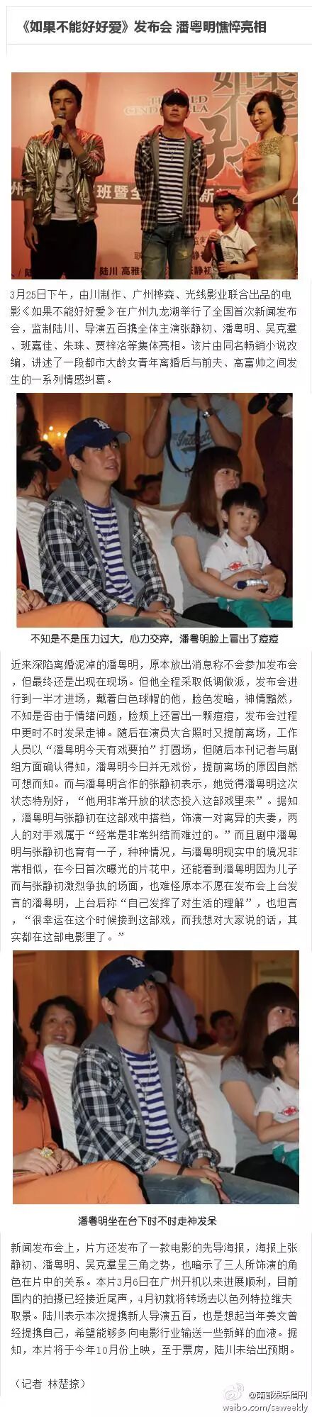 当年董洁王大治激吻视频曝光后,本刊记者在电影发布会现场见到的潘粤明,面容十分憔悴,可见他对那段婚姻刻骨铭心。