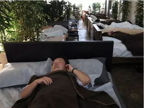 在高档品牌云集的银座,一栋大厦的某个昏暗房间里摆放着16张床和9把椅子。虽然正是中午,但一些人却在这里睡得很香。这里是雀巢日本公司和全日本床品工业协会限时开设的“睡眠咖啡馆”。虽然是工作时间,但希望躺下稍稍小睡一会的人纷纷来到这里。