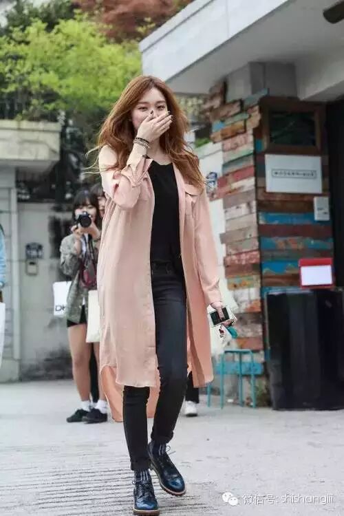 个子高就是好,可以穿这种加长版的大衣,踏一双小白鞋即可
