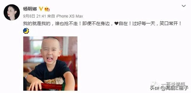 他一连发布好几条博文,字里行间的意思是表明他与杨明娜已经离婚,他打官司还胜了,儿子被判给爸爸。他还公然向杨明娜喊话,称“你两个的罪过不要再连累孩子”。