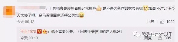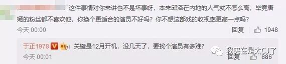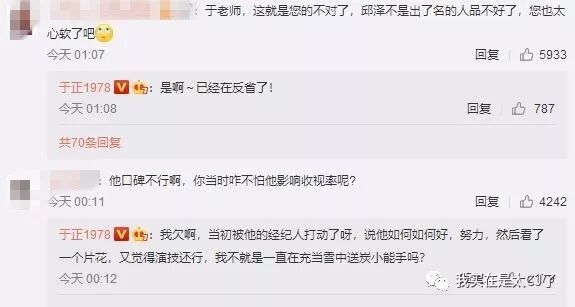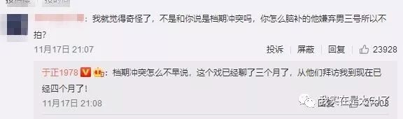 于正还在自己的微博下面,一边回复网友一边继续怼:如果档期有冲突,为何不提前说