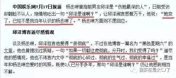 当然后来,邱泽也承认自己爱过杨丞琳,两人分手后,杨丞琳一句“邱泽是谁啊”,让他颇为不解。