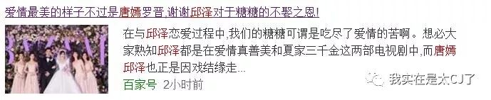 说起来,邱泽之所以在内地比较多争议,除了他的业务能力,大家的炮火更多的指向他的处理感情的方式,尤其是和唐嫣之间的绯闻,前阵子唐嫣大婚,还有媒体打出“感谢邱泽不娶之恩”的标题: