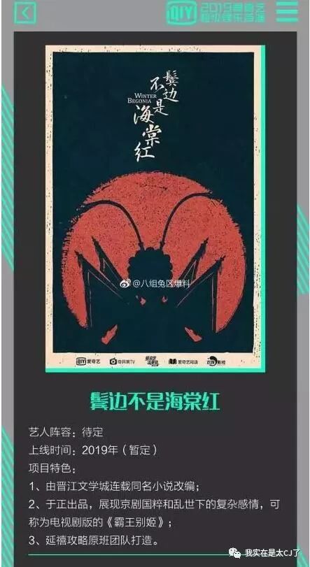 这部戏就是《鬓边不是海棠红》,号称是电视剧版的《霸王别姬》