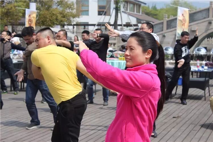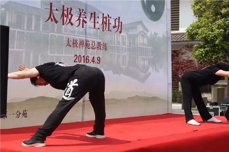 为了让到场来宾感受太极桩功的精髓所在,两位禅苑太极教练分别为来宾作前后动作展示。