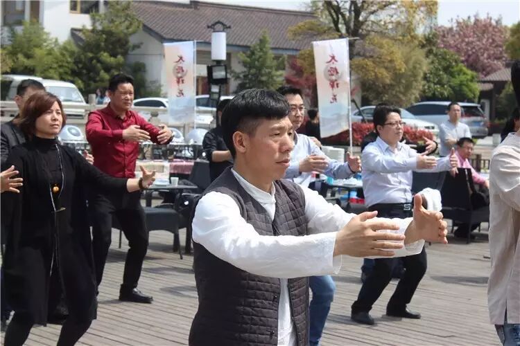 尚湖牡丹花会开幕式落幕后,在太极禅苑常熟分苑的场地上,正不紧不慢的展开着一场别开生面的太极表演和互动。