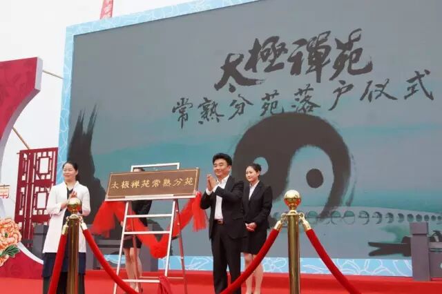 常熟市旅游局唐晓局长和太极禅苑吕竹婷副苑长,为太极禅院第一分苑(常熟分苑)揭牌