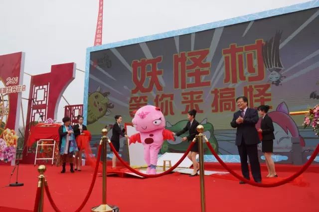 虞山尚湖旅游度假区管委会徐学东主任和圣百合食品有限责任公司杨继玉董事长,共同揭开2016年景区重点旅游文创项目“尚湖妖怪村”的神秘大礼