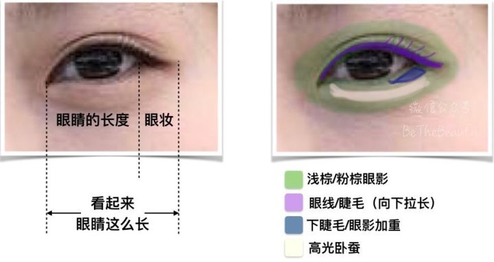 而现在的眼妆,则是针对她眼睛短的问题调整过的: