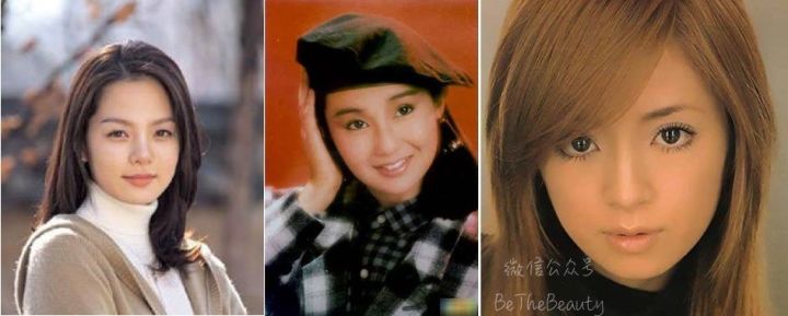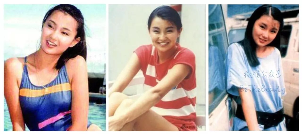 而张曼玉则不算太标准,她早期其实眉眼不算很挑,配合圆脸更多是不出挑的可爱。