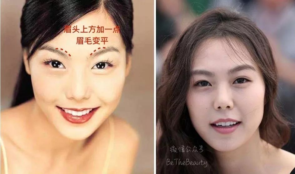 ▲眉毛变平,鼻子变长,人中变短——更标准版的长相