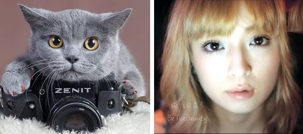 而下颌和鼻子的长度也很重要,如果你的下巴长得太长太尖,即使有大眼睛,也不像猫,更像: