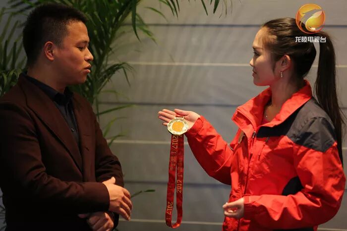 【记者现场】刘倩倩:“明晚,2017中国十佳劳伦斯冠军奖颁奖盛典将在北京举行,在颁奖盛典上,由龙陵黄龙玉制作的奖牌也将在观众面前亮相,相信大家都对这次劳伦斯冠军奖的“金镶玉”奖牌充满了好奇,此次颁奖奖牌是由云南黄龙玉原产地龙陵县提供,我手中就有其中一枚奖牌,我们可以看到,这枚镶嵌着黄龙玉的奖牌不仅体现出了中国特色,和以往的奖牌相比较,还有一些很特别的地方,那么究竟特别在哪些方面呢,就请我们的奖牌承制方杨本达和我们解析一下。”