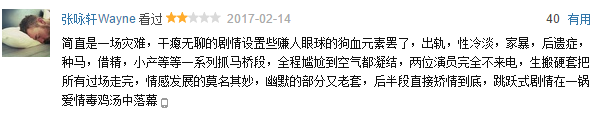 因为,生活本是平淡,所以,情侣,都是期待着浪漫的。而情人节就是象征着浪漫,你却来个什么出轨、借精、小产的戏,你让我们这些小情侣看完的心情,还能过一个浪漫的情人节吗