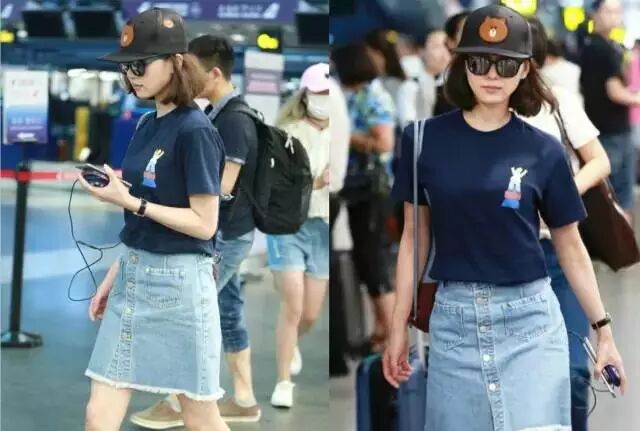 搭配简单的T恤牛仔裙