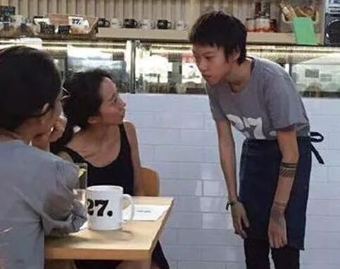 窦靖童曾经在北京某咖啡店打工的时候被别人拍到了,态度诚恳,语言谦卑,还俯身为顾客服务,非常有教养,一点都没有明星架子。